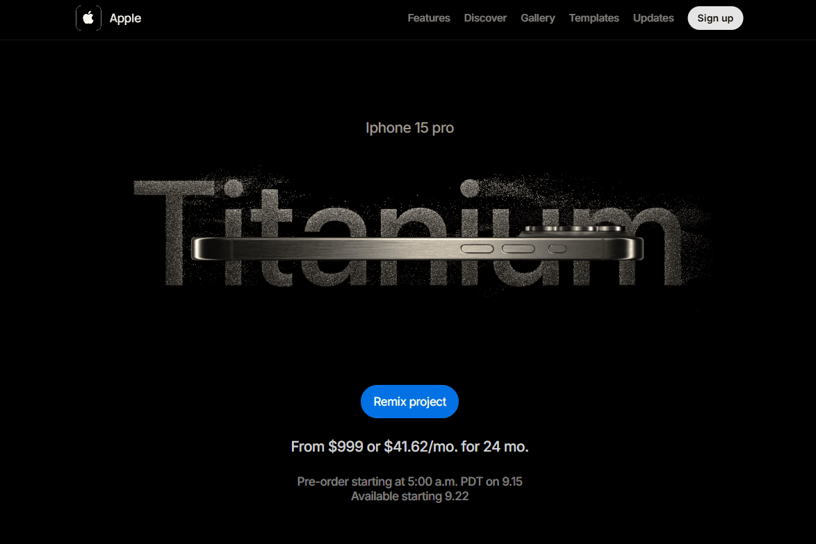 A web experience that elevates the iPhone 15 Pro from a device to a piece of technology art — turning product browsing into an emotional moment of desire.