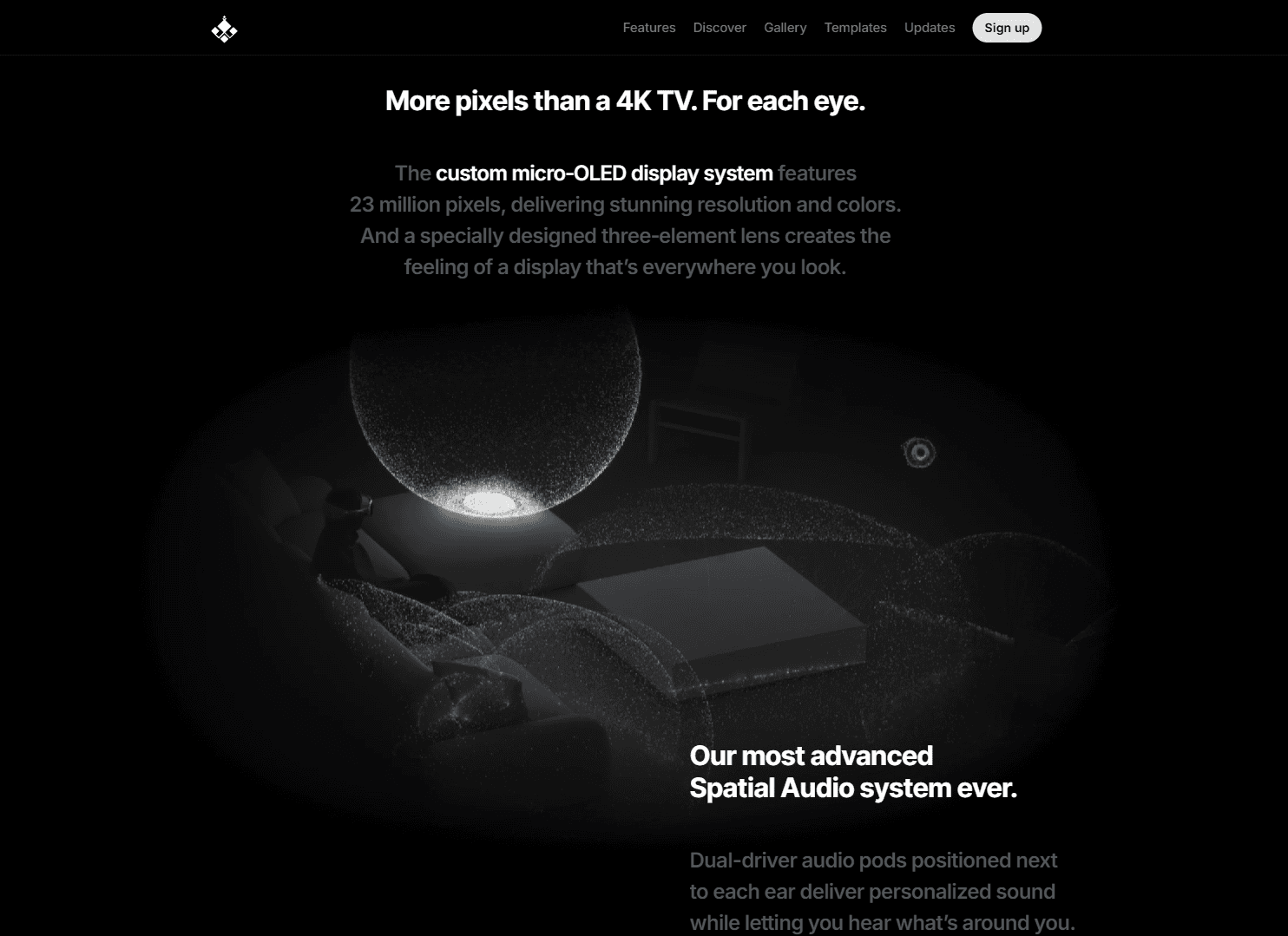 A website that transforms Apple Vision from a headset into a piece of technological art.