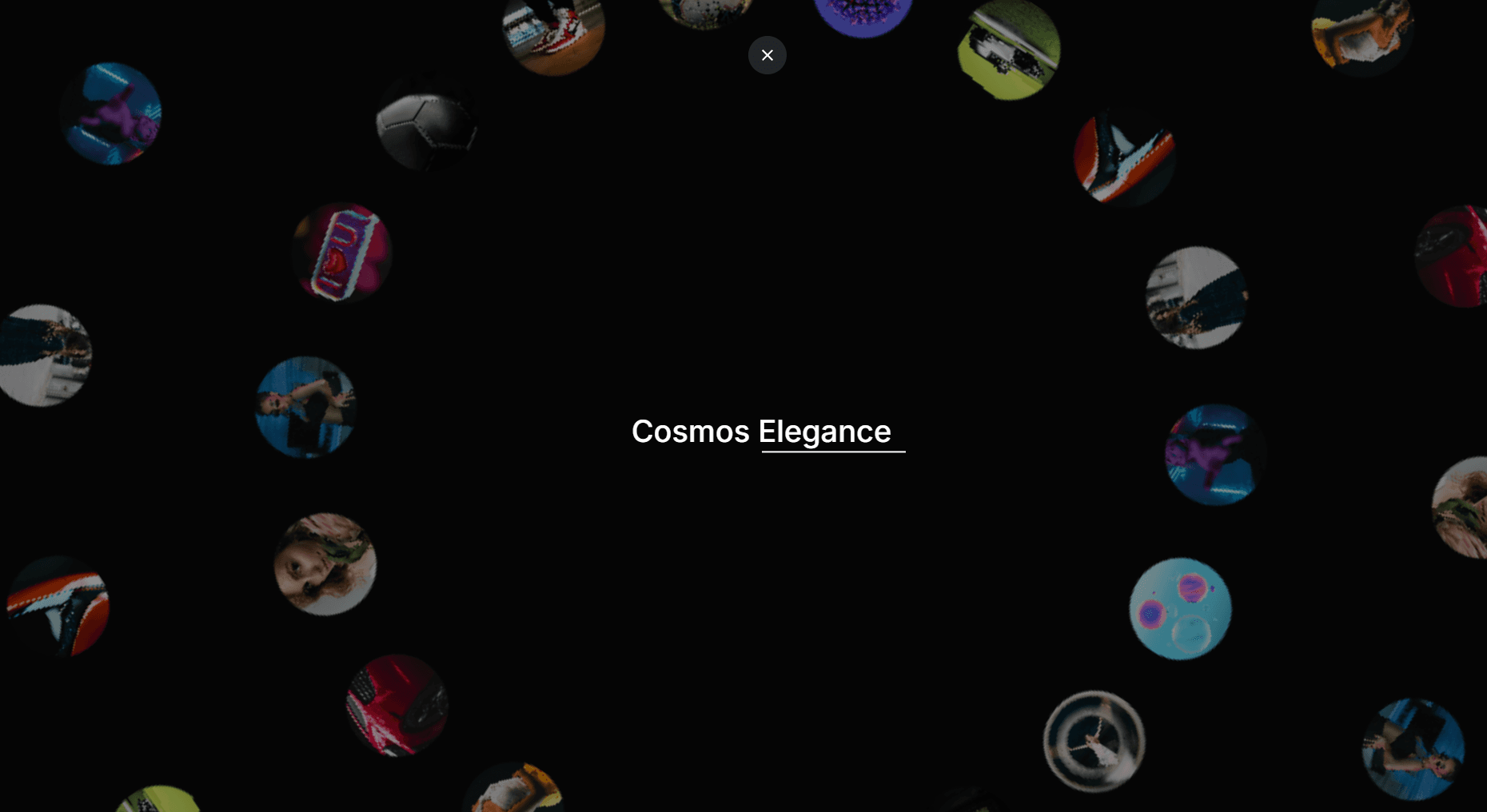 Instead of scrolling through a gallery, visitors watch images orbit around them in circular motion — as if floating in space — while the title sits still at the core.